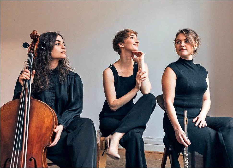 Ein außergewöhnliches Klangerlebnis erwartet das Publikum beim ersten „Nauheimer Werkstattkonzert“ mit dem international besetzten Ensemble „threeSOUND“. Drei junge Musikerinnen verbinden Flöte, Cello und Klavier zu einem faszinierenden Klangmosaik. Dies ist geprägt durch die Vielfalt ihrer kulturellen Hintergründe: Russische Seele trifft auf schwedische Gelassenheit und spanisches Temperament. Dem Klassik-Trio gehören die schwedisch-deutsche Flötistin Elisabeth Nilsson, die in Spanien geborene Cellistin Raquel Rivera Novillo und die aus Russland stammende Katerina Moskaleva (Klavier) an.
